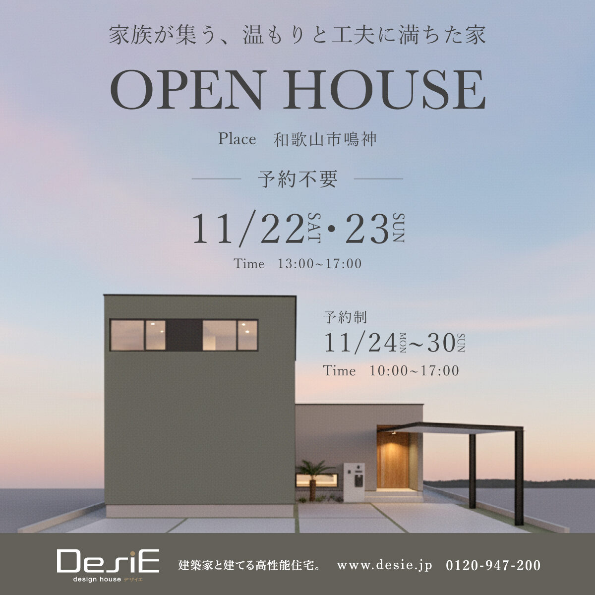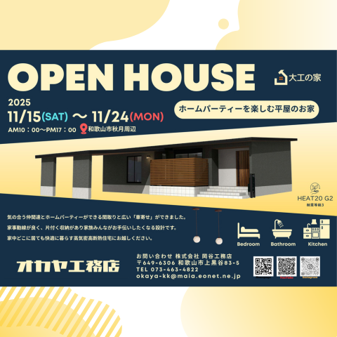 【家族の笑顔が集う、あたたかな白い平屋】 12/6(土)・7(日)・13(土)・14(日) 平屋完成見学会in紀の川市久留壁 開催!!