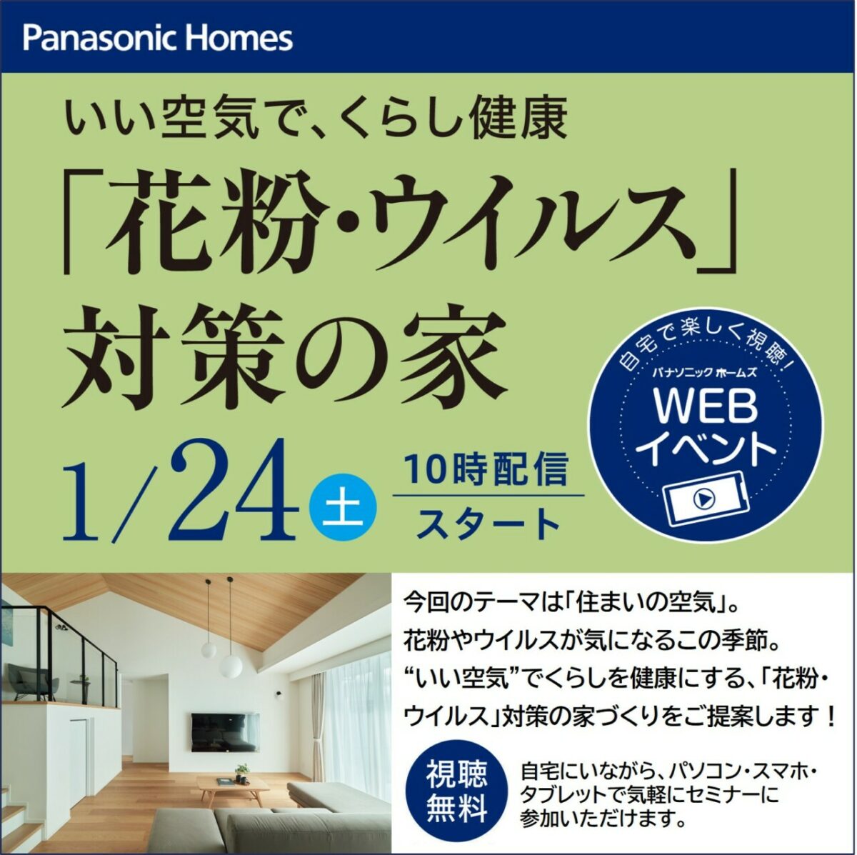 自宅で楽しく視聴!WEBセミナー『いい空気で、くらし健康 花粉・ウイルス対策の家』
