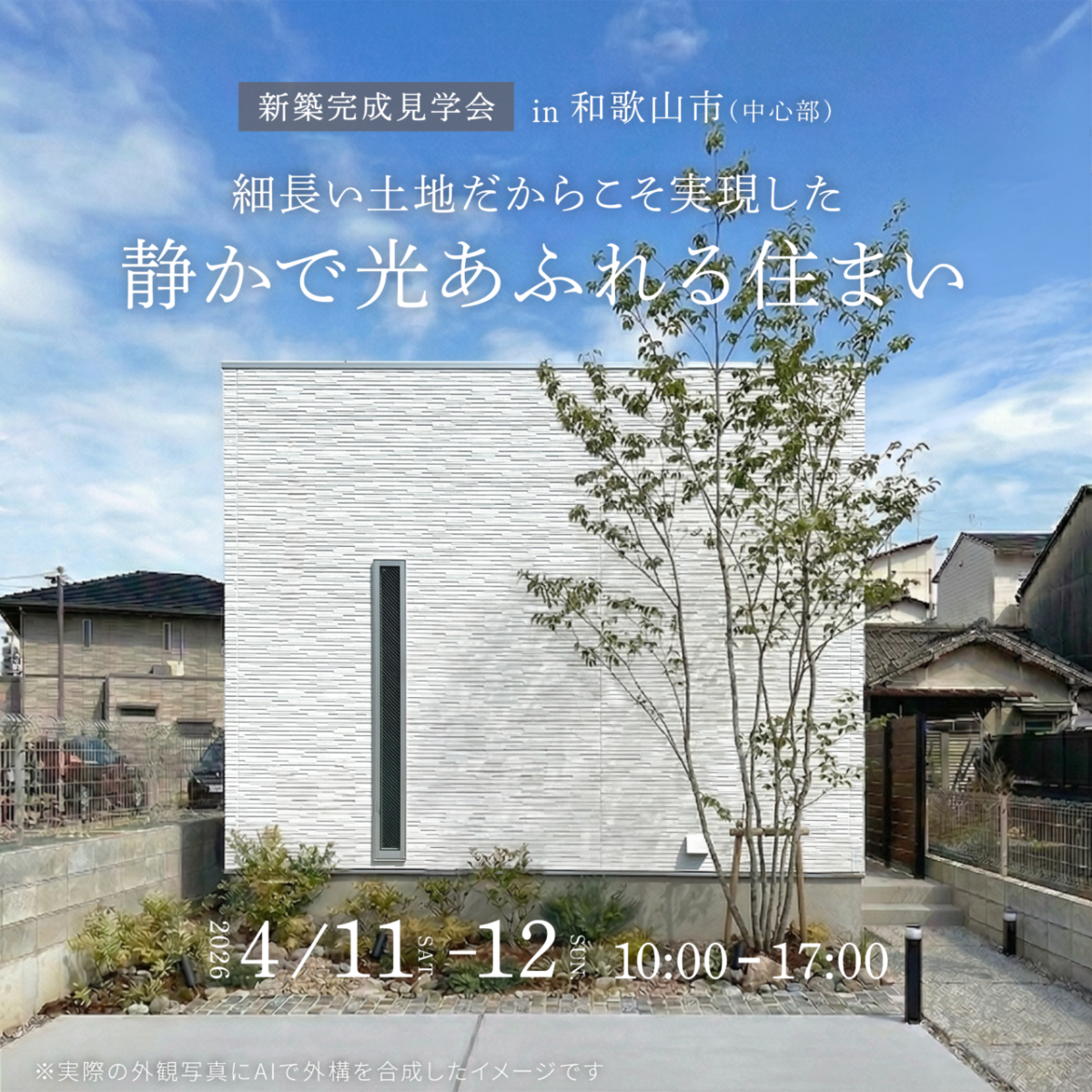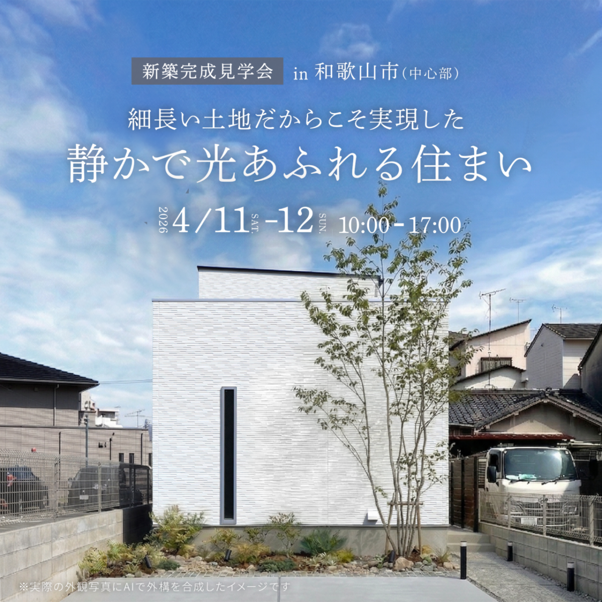 [和歌山市] 細長い土地だからこそ実現した、静かで光あふれる住まい 完成見学会