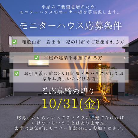 要予約 限定3棟大募集!平屋モニターハウス相談会