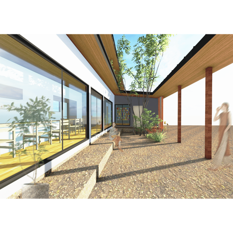 中庭で子どもと遊び、土間ベンチでおやつを食べながら休憩したり。