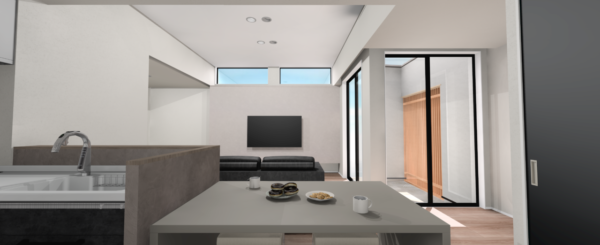 ◯ 高天井で帖数以上の広さを感じられる17.75帖のLDK