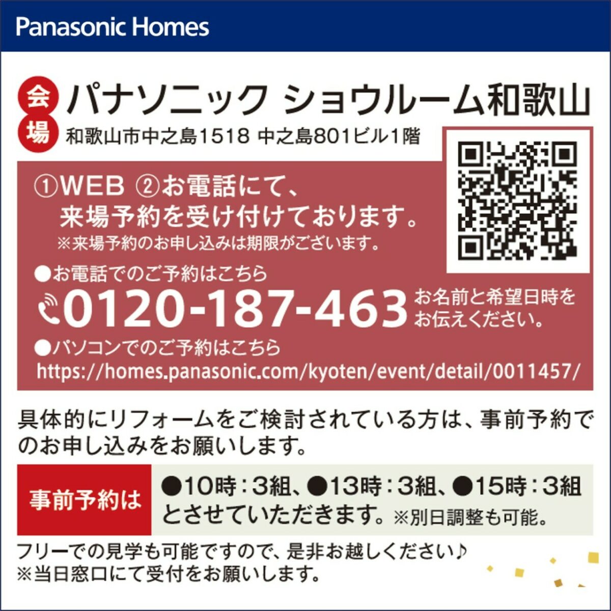 会場 パナソニック ショールーム和歌山(和歌山市中之島1518中之島801ビル1階)