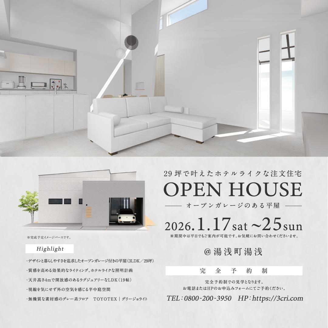 要予約 1/17(土)〜1/25(日) 29坪で叶えた ホテルライクな注文住宅 -オープンガレージのある平屋-
