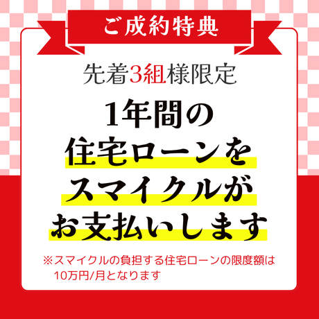 ◆ 新年お年玉ご成約特典:ローン1年分をスマイクルが負担いたします!