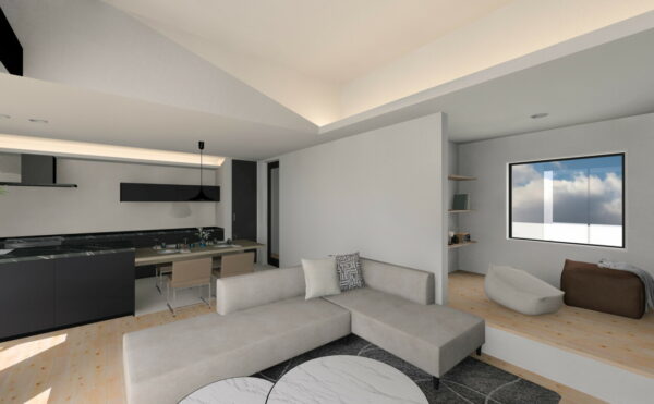 ・間接照明が上質さを出す高天井リビング