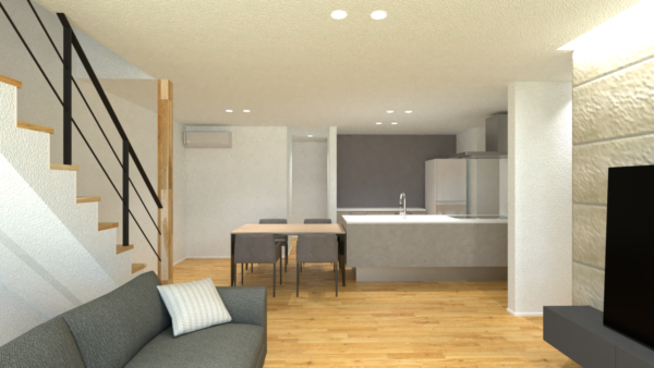 ・キッチンを中心にした回遊動線の「最短効率の家事ラク間取り」