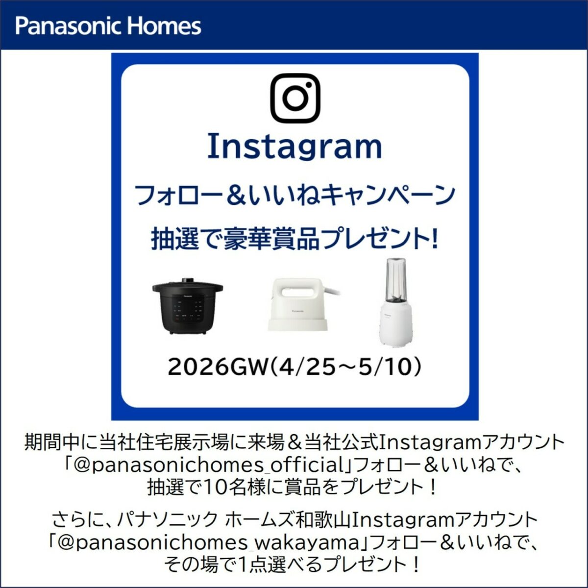 同期間中、パナソニック ホームズ和歌山Instagramアカウント「@panasonichomes_wakayama」を