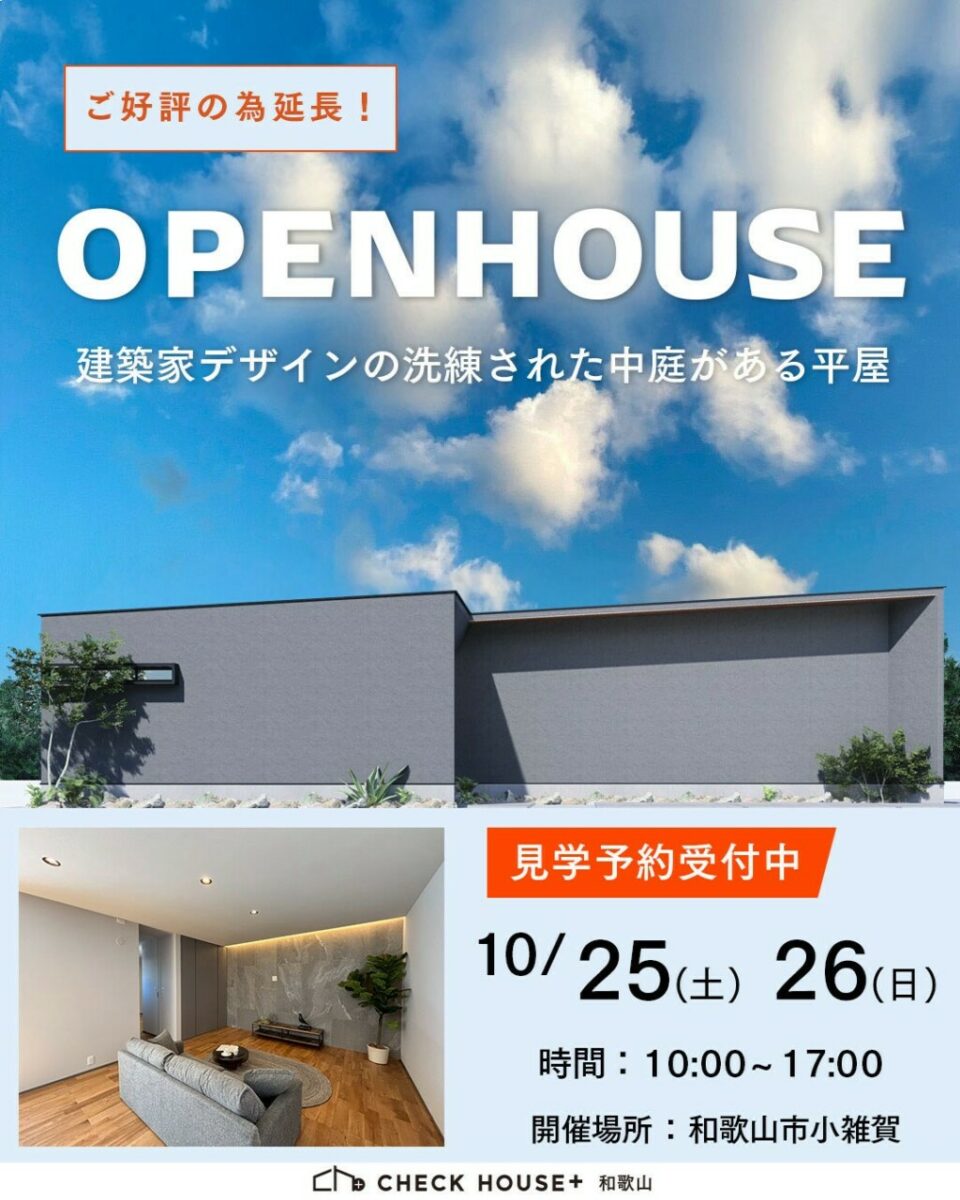 ご好評の為延長!!【建築家デザインの洗練された中庭がある平屋】10/25(土)・26(日)平屋完成見学会in和歌山市小雑賀 開催!!